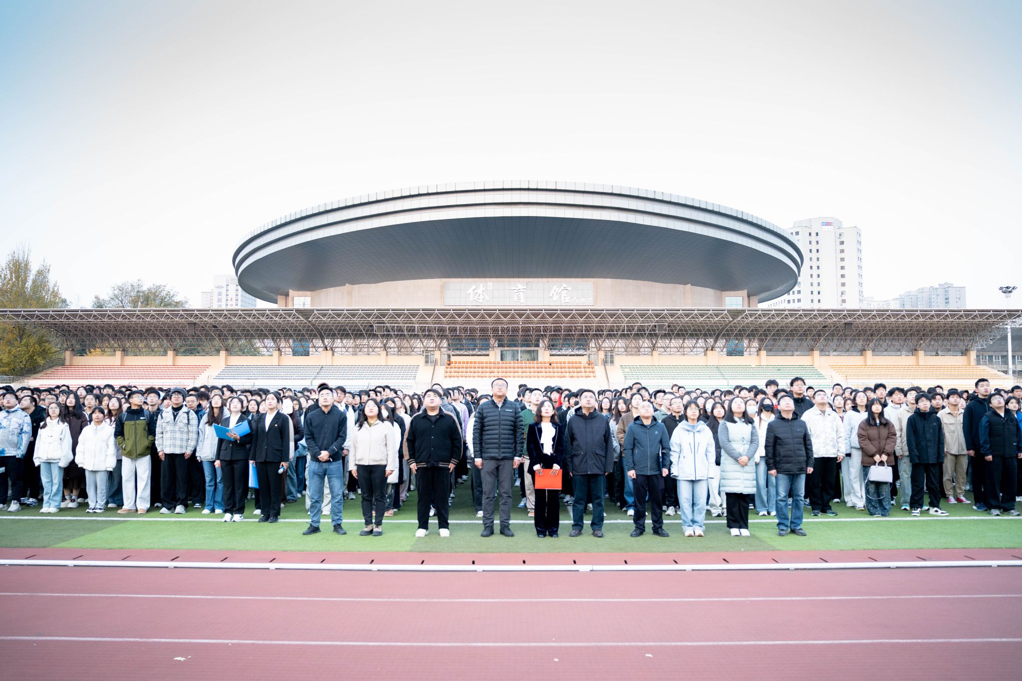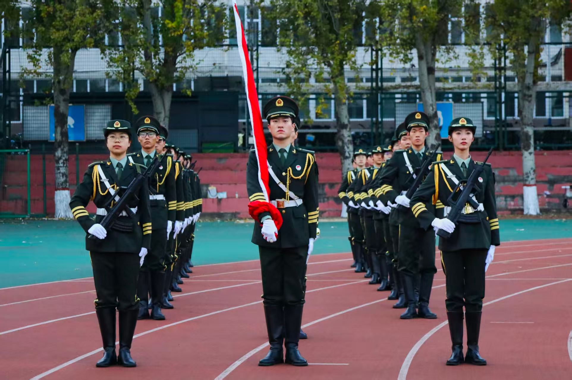 11月3日,晨雾初散,朝阳破云,坞城校区操场晨光熹微,永利3044集团官网领导班子、辅导员以及全院员工以挺拔姿态列队肃立,静候升旗仪式启幕。7时整,国旗班迈着正步护送五星红旗入场,红绸猎猎,与晨光交相辉映。当《义勇军进行曲》的旋律响起,升旗手振臂展旗,永利3044集团官网全体师生肃立行注目礼,嘹亮的国歌在操场上空回荡,每一句歌词都激荡起师生心底的爱国热忱。
