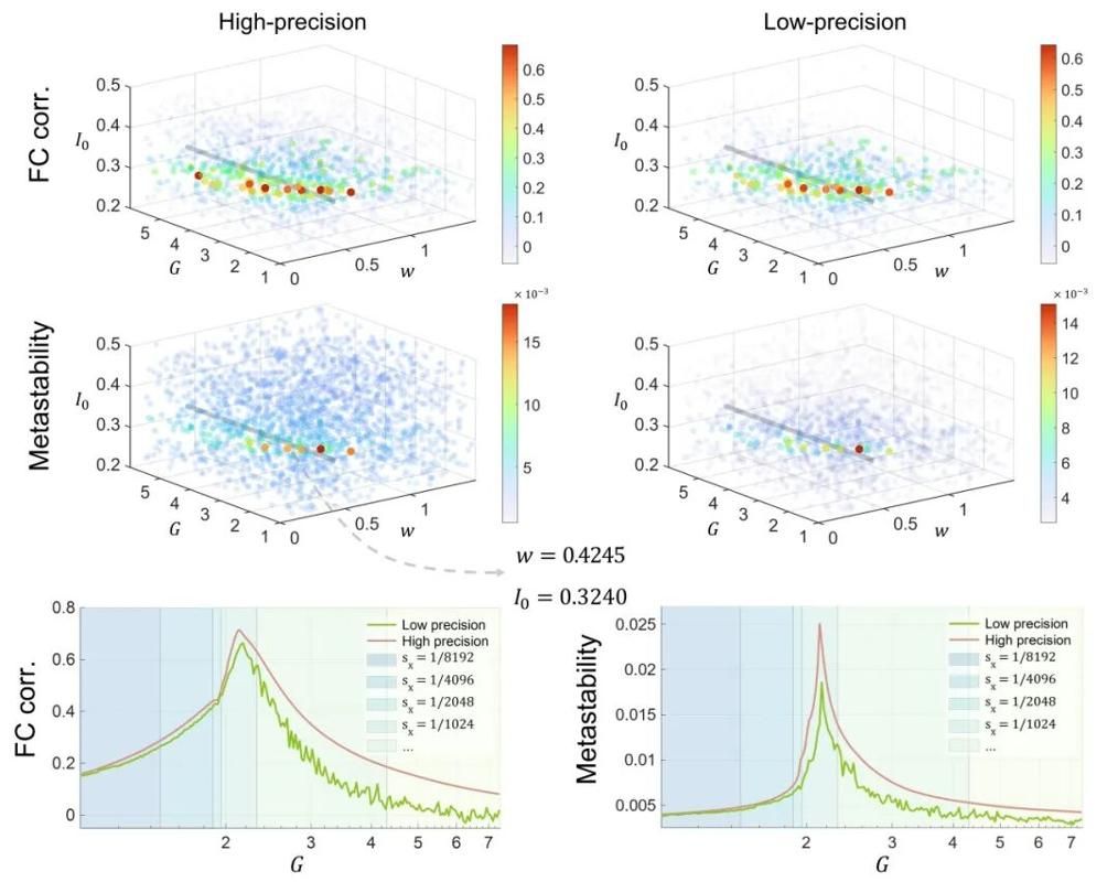 类脑计算芯片(如“天机芯”)虽具备高并行、高能效特性,但其低精度、面向智能计算的设计,与脑动力学仿真所需的高精度科学计算范式存在鸿沟。针对此挑战,本研究首次系统性设计了面向复杂脑动力学模型的低精度量化框架,并创新性地提出了层次化并行映射策略,成功在“天机芯”上实现了大规模脑模型的高保真、稳定仿真。